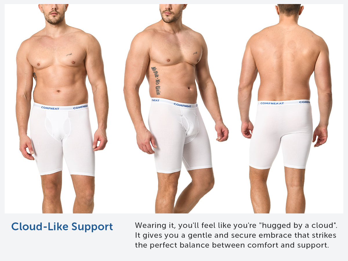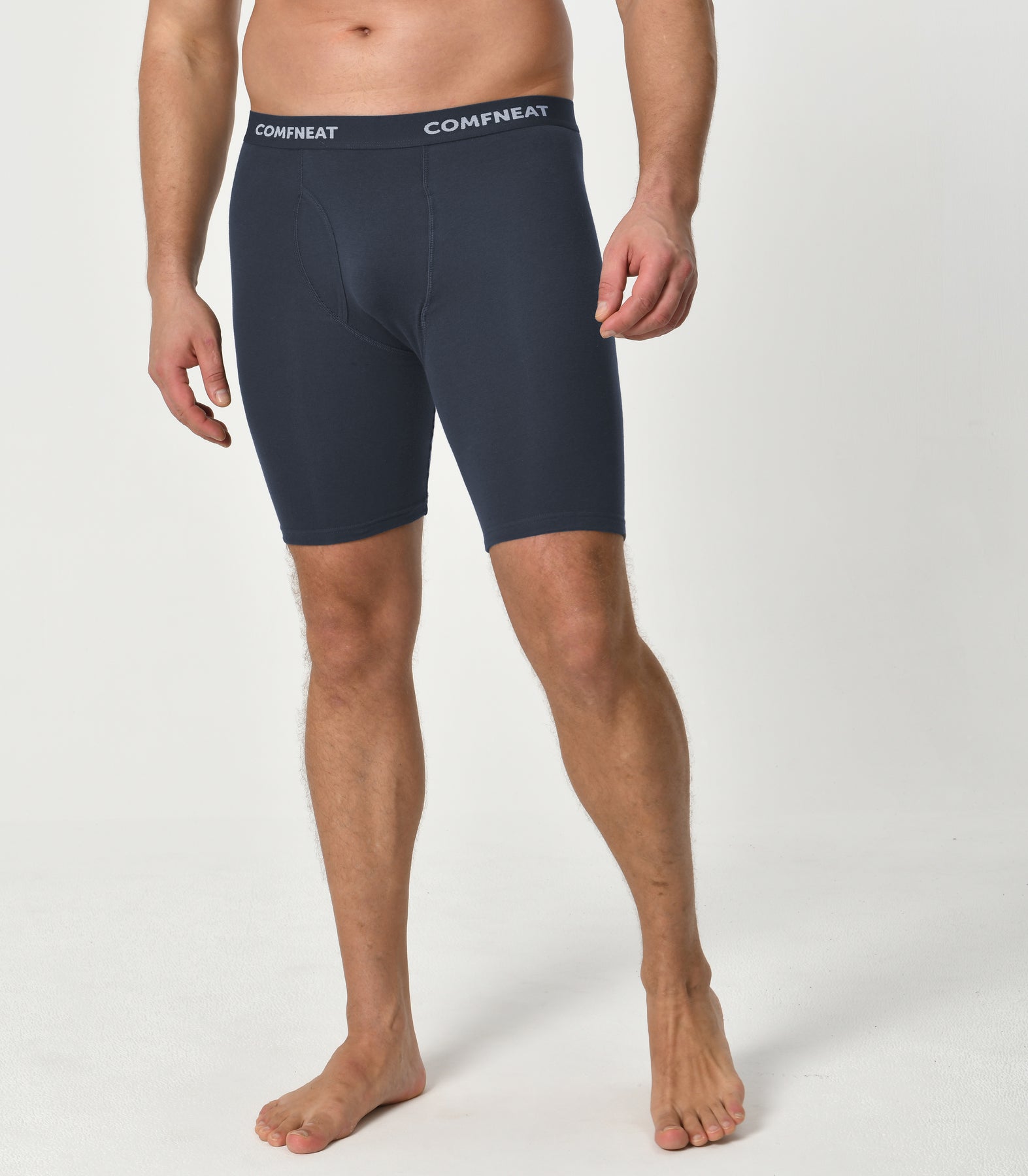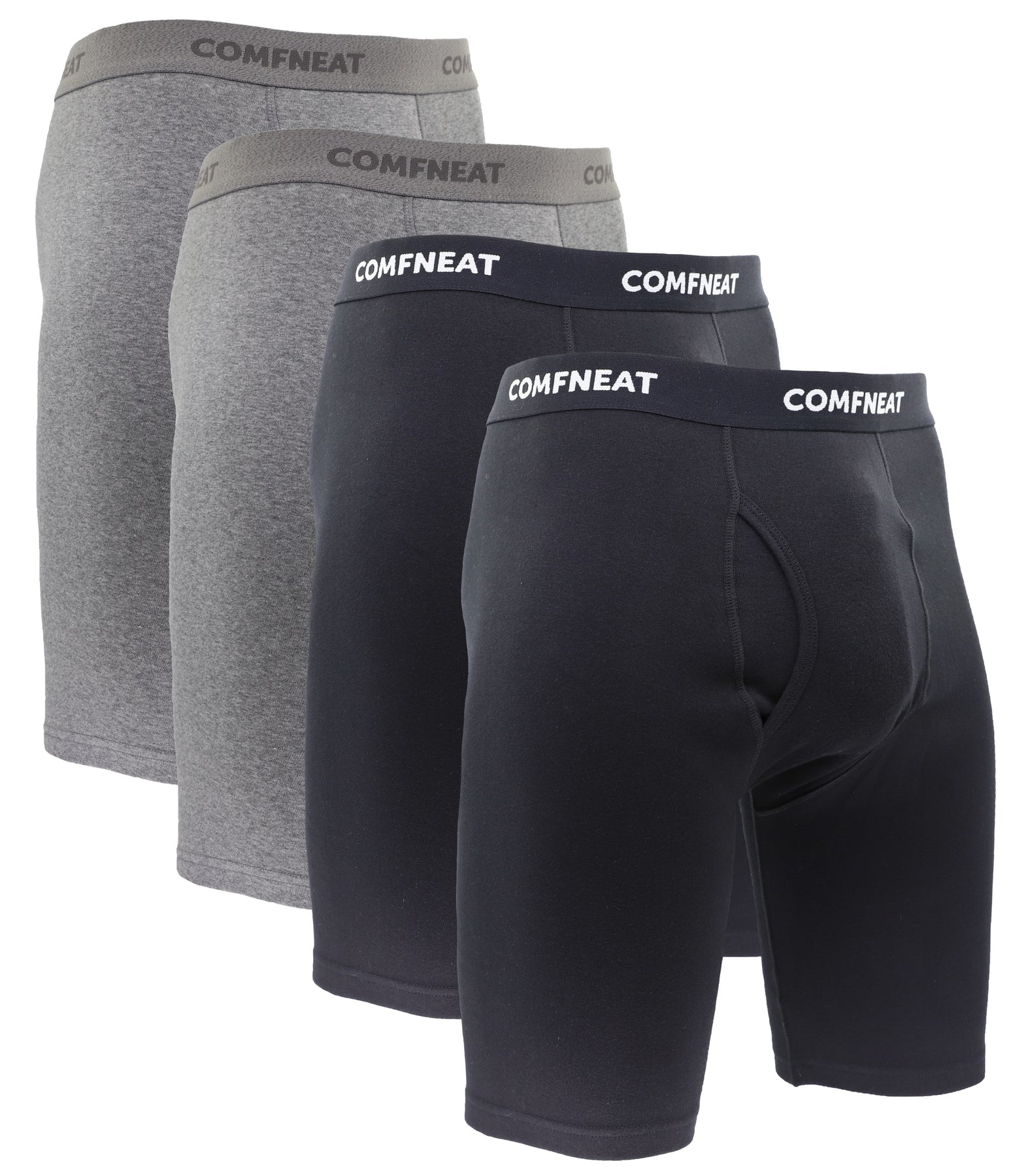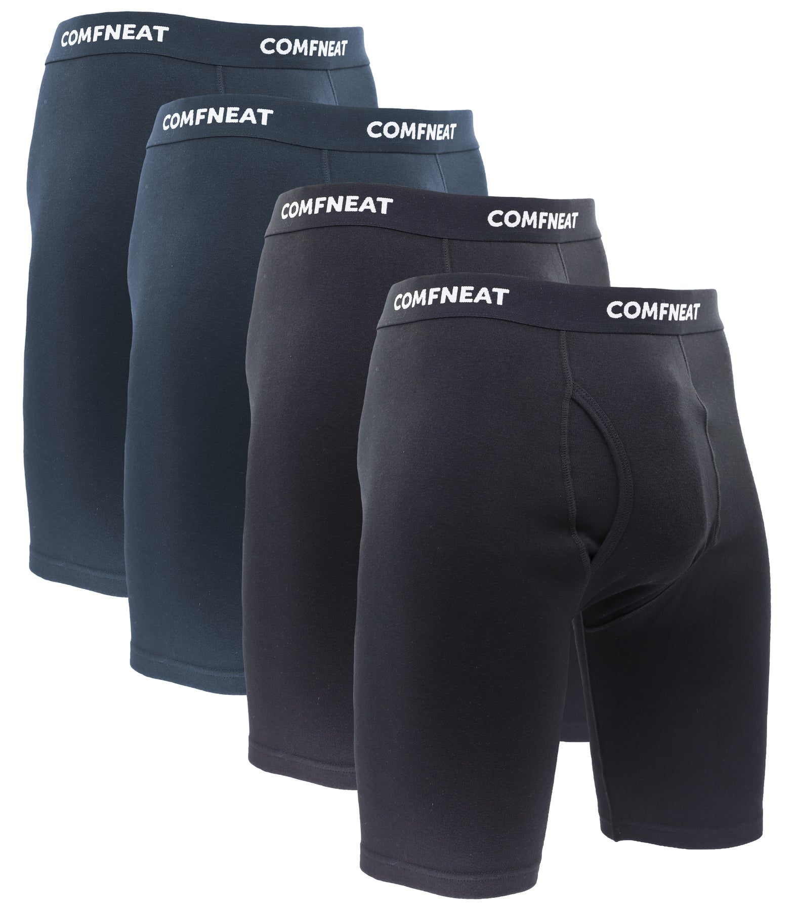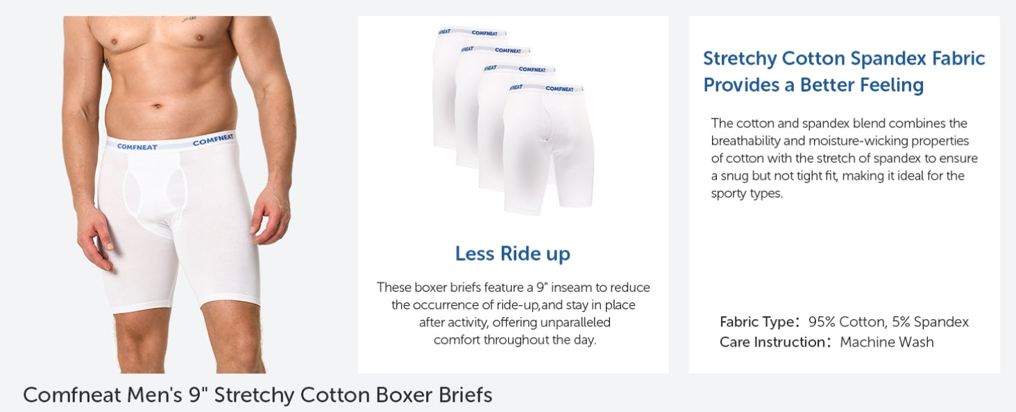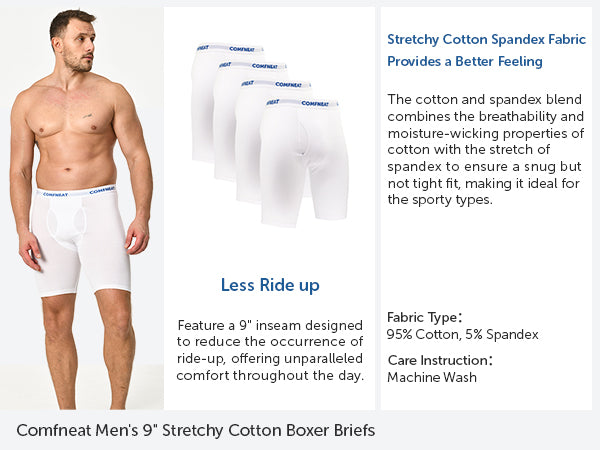 Comfneat Men's 9 inch Boxer Briefs Stretchy Cotton Spandex Underwear with Fly 4-Pack