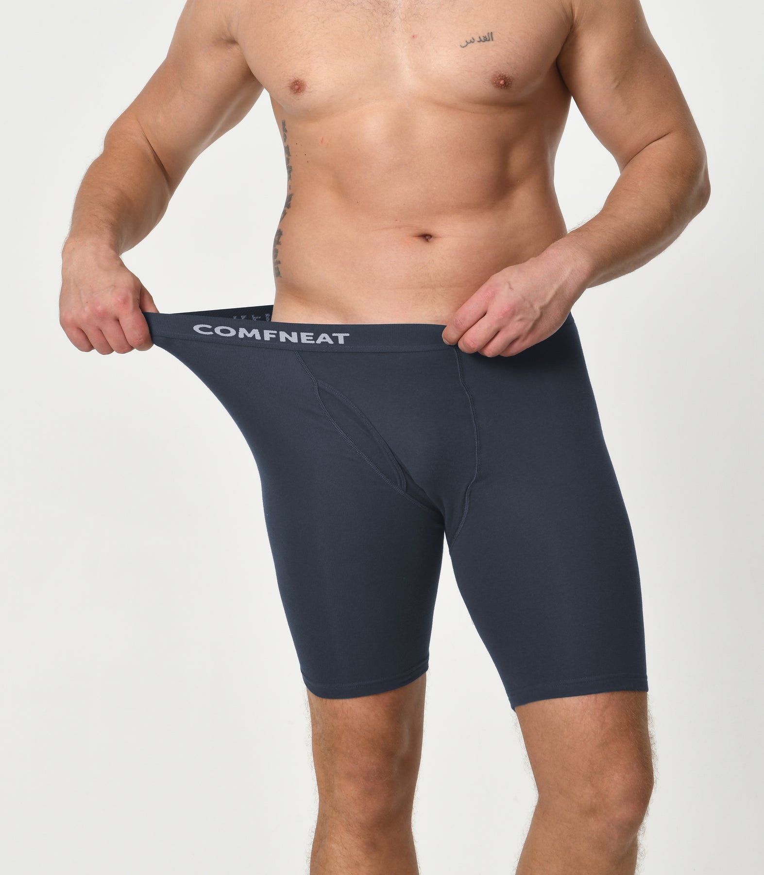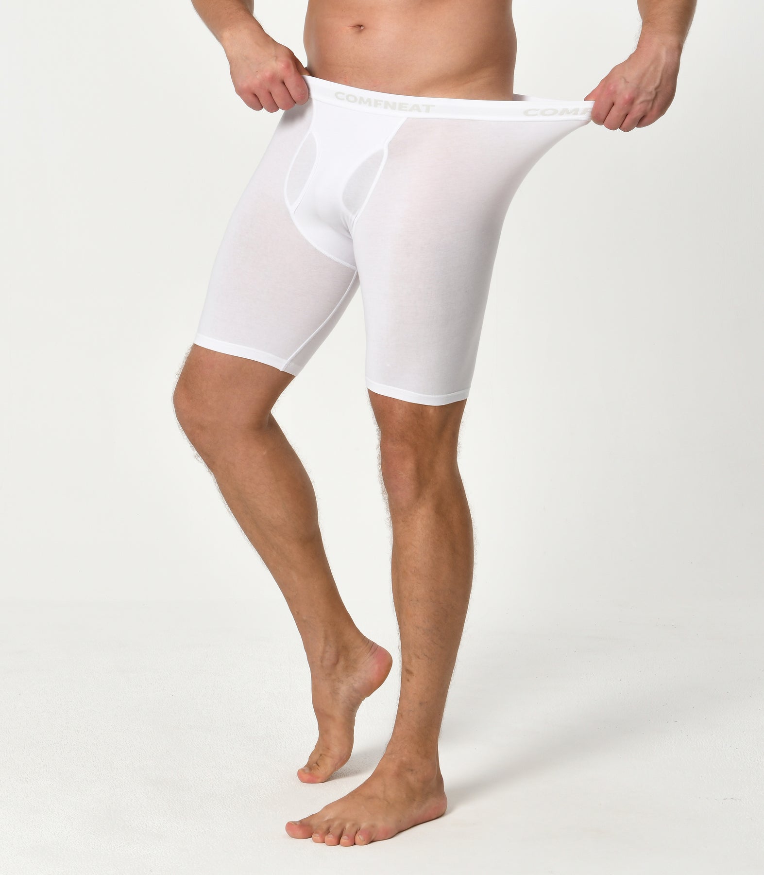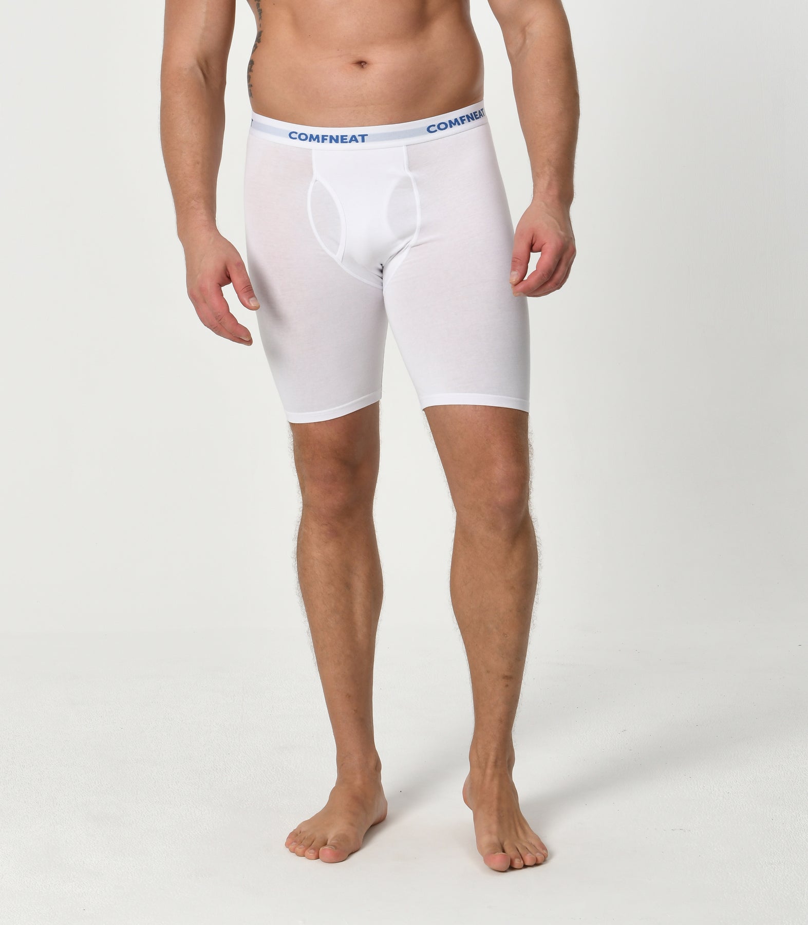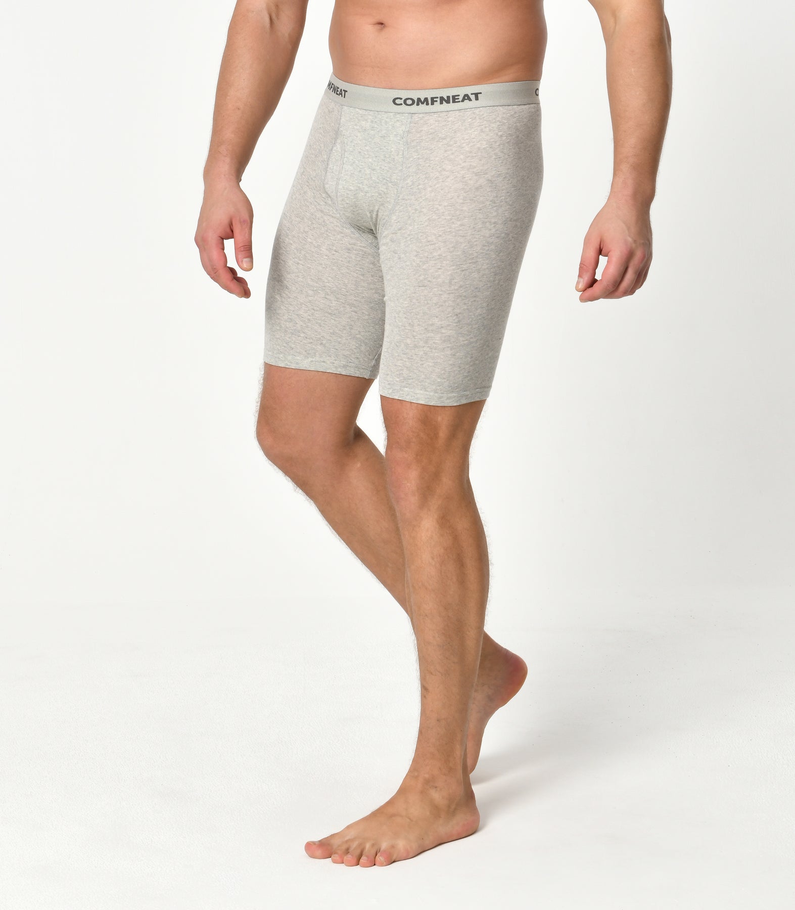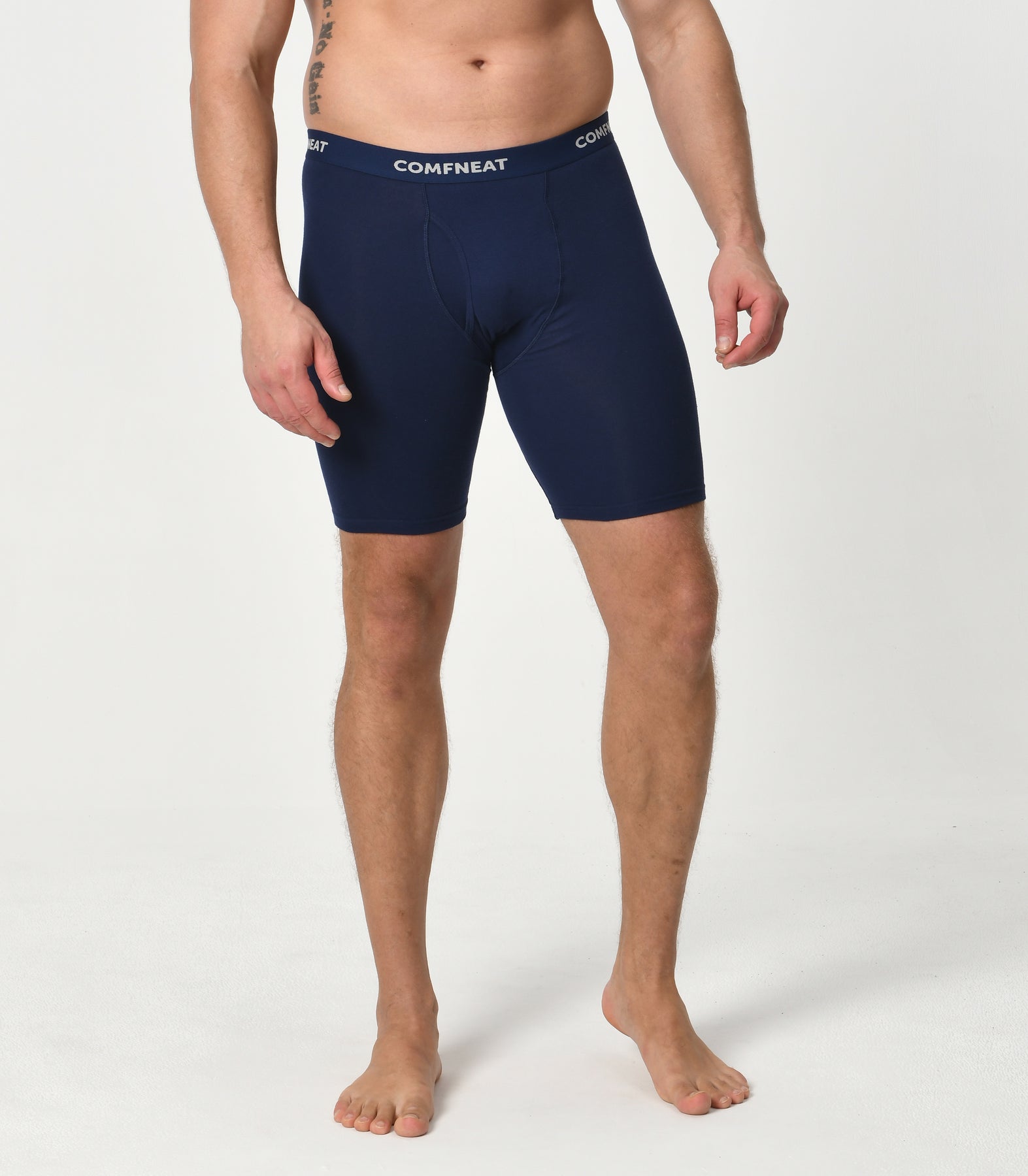 Comfneat Men's 9 inch Boxer Briefs Stretchy Cotton Spandex Underwear with Fly 4-Pack