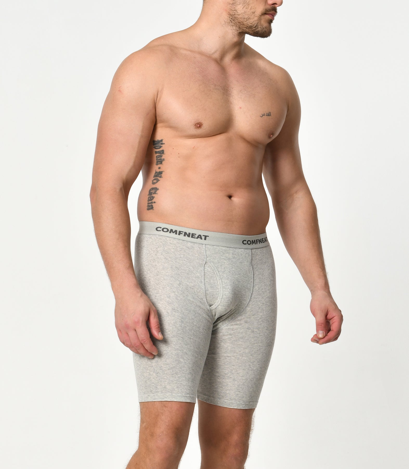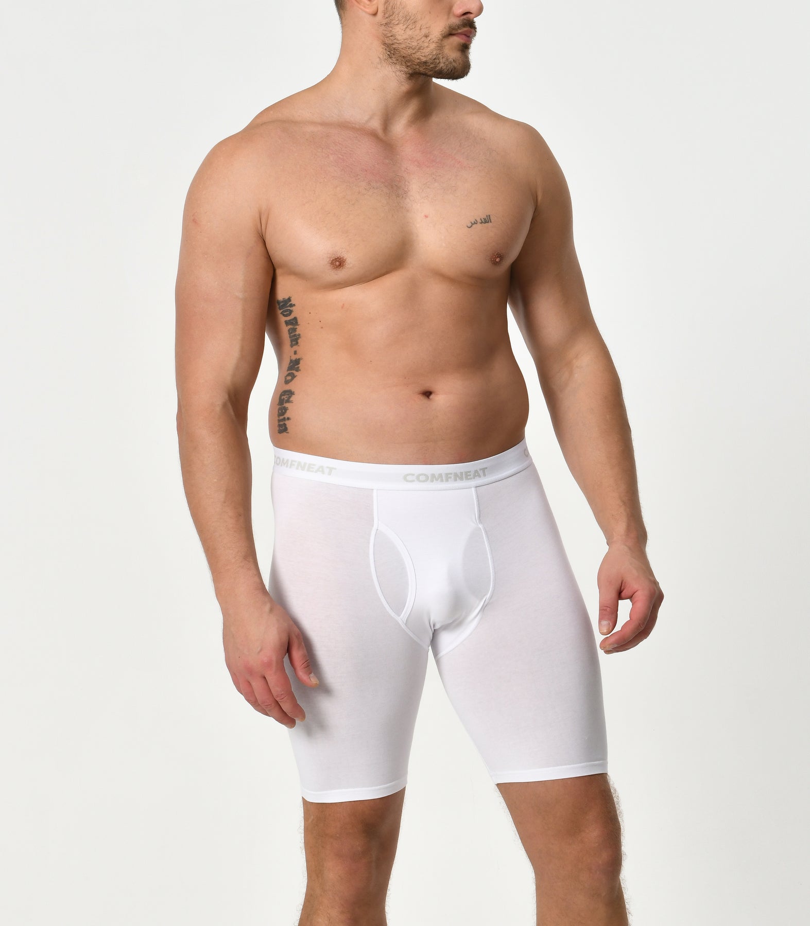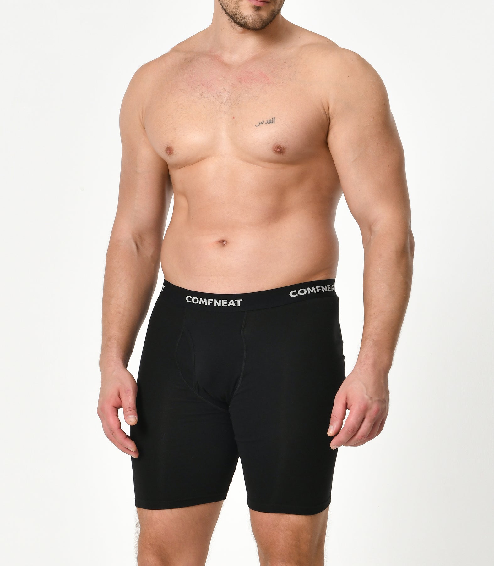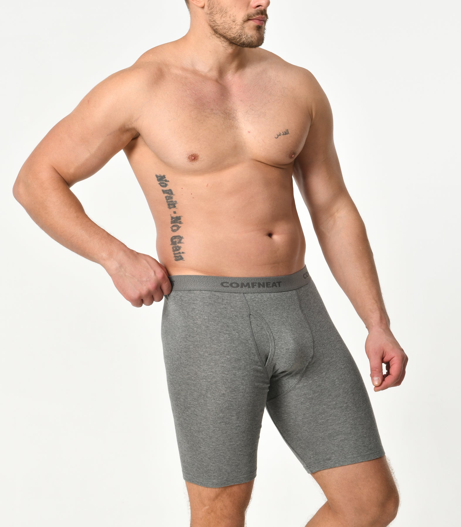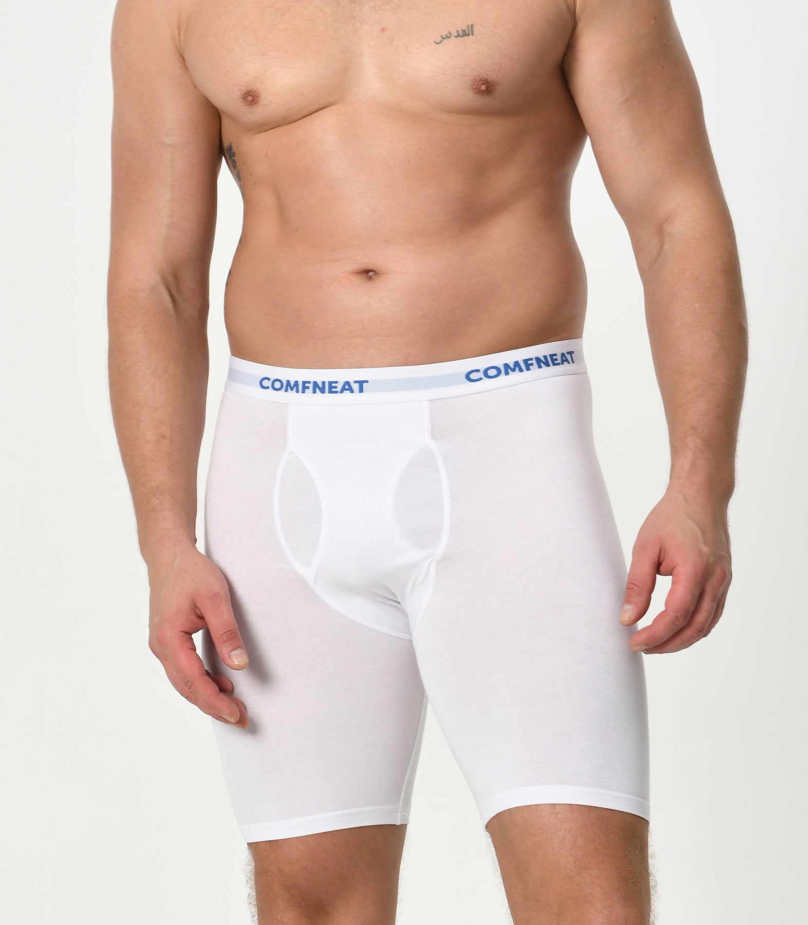 Comfneat Men's 9 inch Boxer Briefs Stretchy Cotton Spandex Underwear with Fly 4-Pack